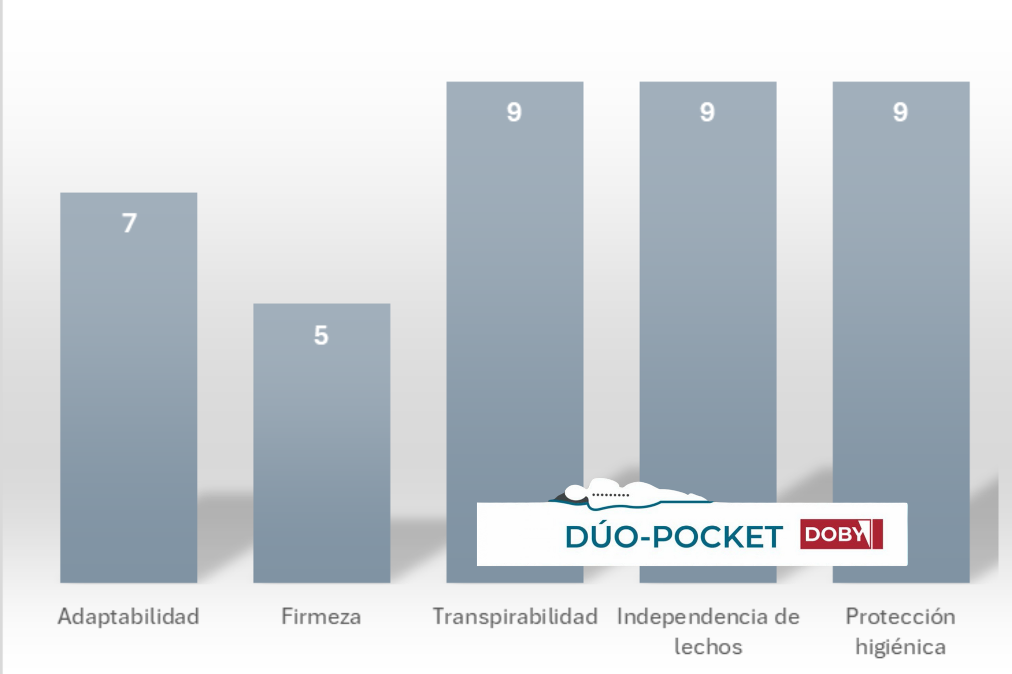 Dúo- Pocket es un colchón con un sistema de descanso de muelles de acero independientes, colocados individualmente dentro de unos pequeños sacos textiles, ya conocidos como muelles ensacados.