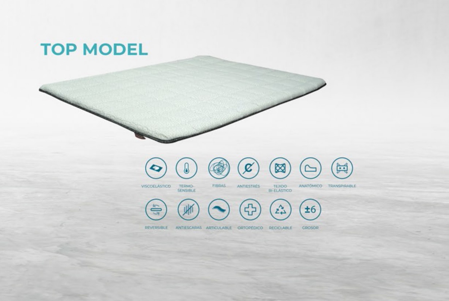 Sobrecolchón viscoelástico que mejora tu colchón, añadiéndole un plus de suavidad y adaptabilidad al tiempo que disminuye las presiones aliviando los dolores musculares y facilitando la circulación sanguínea. Tejido elástico con hilo y ribete de lúrex que descarga la electricidad estática causante de estrés. La cara opuesta es de un tejido técnico tridimensional transpirable.